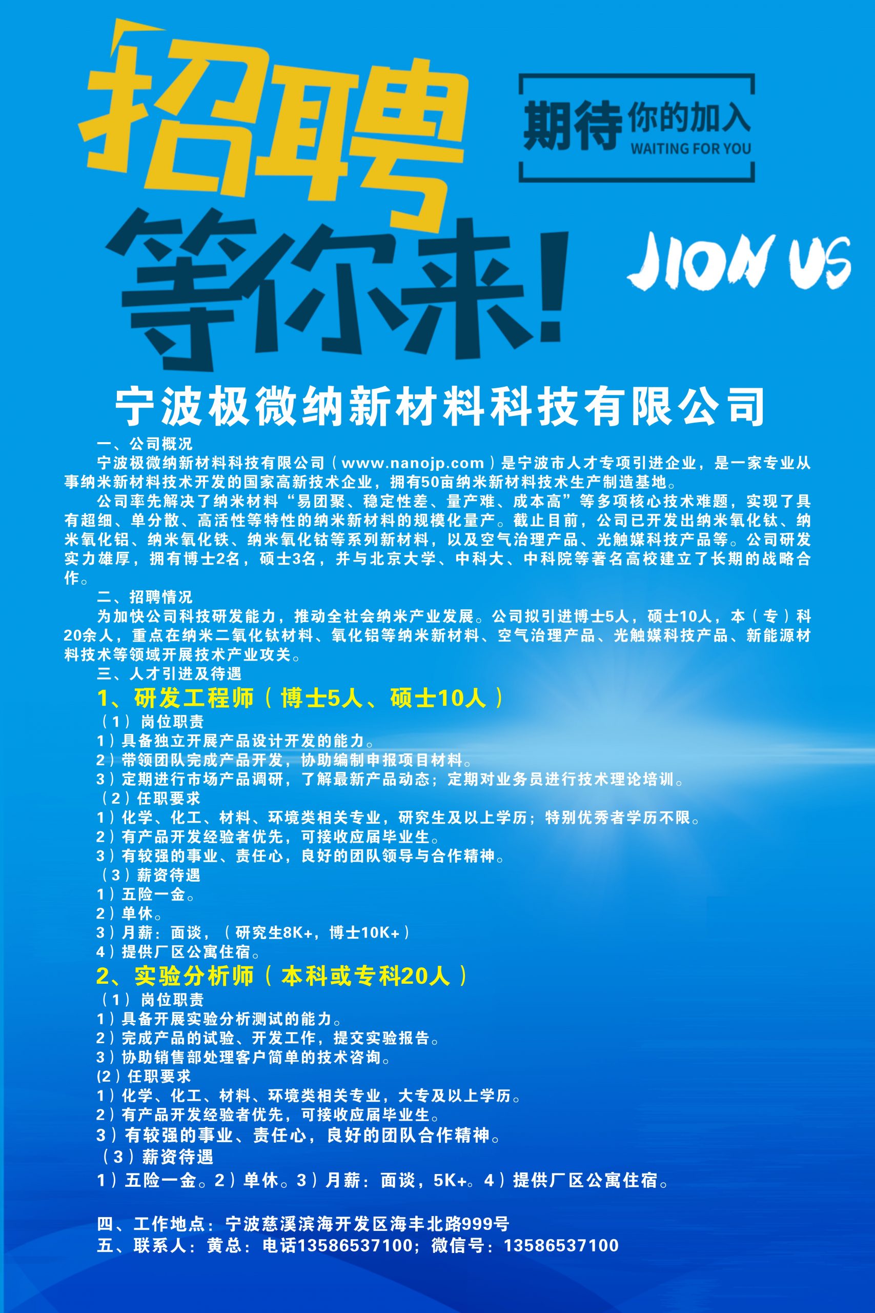 五、联系人:黄总:电话13586537100;微信号:13586537100;邮箱:nbnano@163.com
